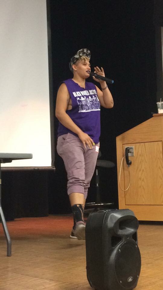 image2 Published November 29, 2017 at 540 × 960 in Black Lives Matter has taken to the streets of Utah and they’re here to stay Activist TK Flory speaking to students at UC Santa Barbara about Black Lives Matter on Oct. 21, 2017. (Photo by Faye Barnhurst)