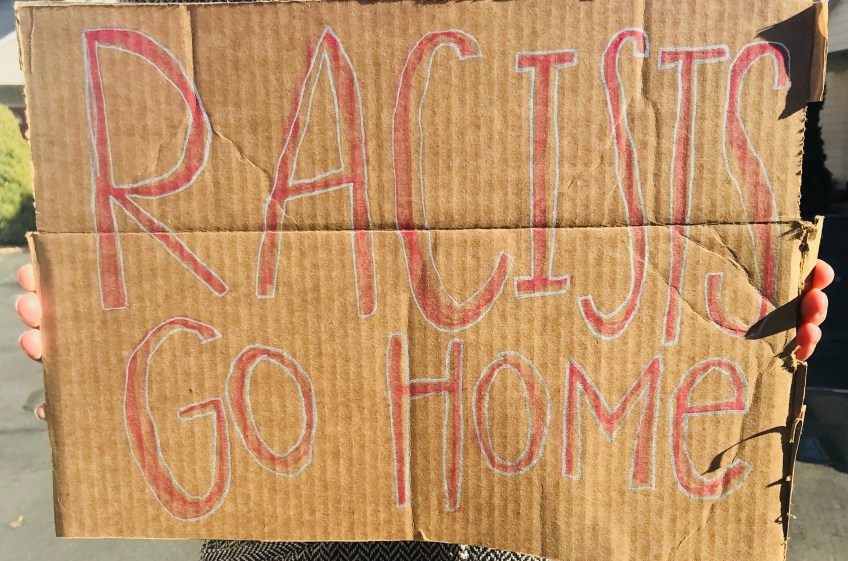 image5 Published November 29, 2017 at 2973 × 1969 in Black Lives Matter has taken to the streets of Utah and they’re here to stay Protest sign at anti-Ben Shapiro rally on Sept. 27, 2017. (Photo by Faye Barnhurst)