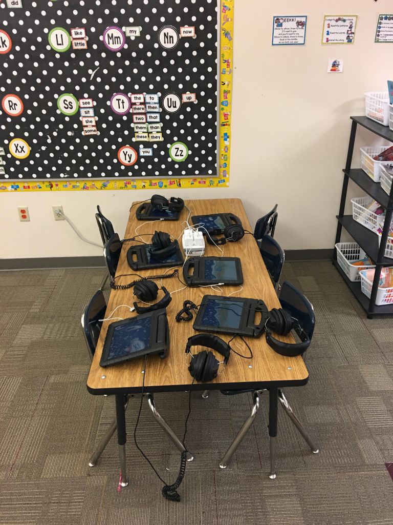 unnamed-2 Published December 5, 2017 at 3024 × 4032 in Kindergarten: the new first grade Tablet center that the kids learn to use Ipads in class.