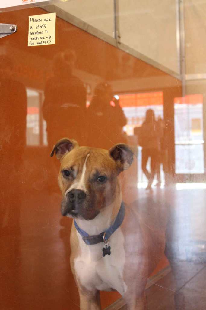 boxer-puppy-looking-through-glass Published April 9, 2018 at 1750 × 2625 in Keaton Shirk A dog waiting to get walked by volunteers at Best Friends Animal Society in the Sugar House neighborhood .