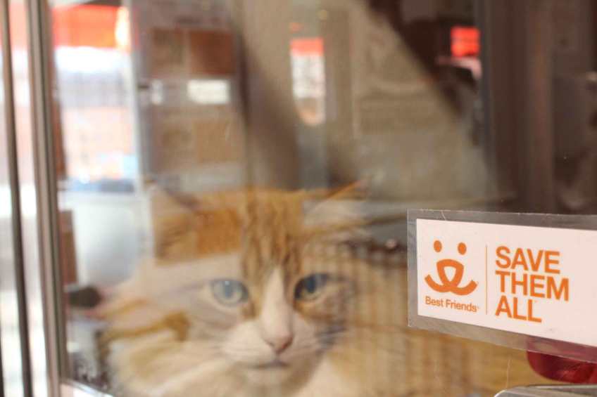 cat-in-box-looking-at-me Published April 9, 2018 at 2700 × 1800 in Keaton Shirk An adoptable cat relaxes in its cage at the Sugar House location.