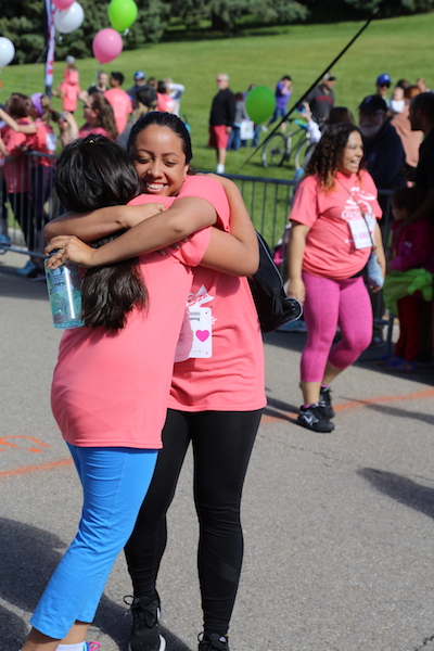 4H0A7131 Published April 2, 2018 at 400 × 600 in Girls on the Run: empowering girls from start to finish Participants hug after completing the race.