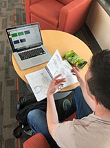 battistone over the shoulder Published April 2, 2018 at 160 × 214 in University of Utah students discuss their passion for medicine and science Battistone reviewing anatomy notes.