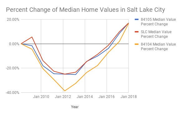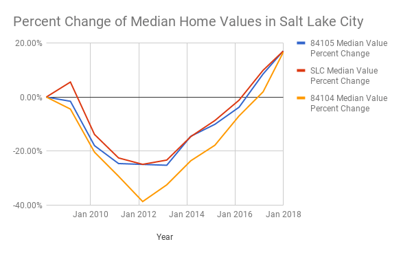 chart Published April 10, 2018 at 600 × 371 in 9th & 9th: shop, dine, and live local “Median Home Values in Salt Lake City”, Data by Zillow