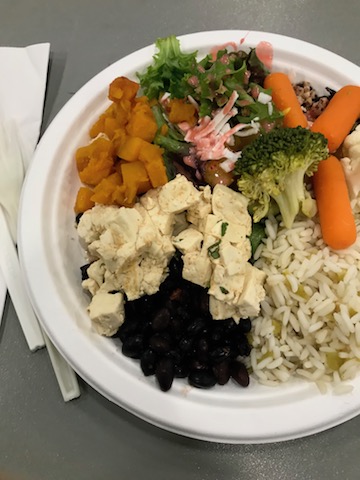 IMG_9954 2 Published November 12, 2018 at 360 × 480 in Jen Chun The lunch at the symposium. There was no meat but all composed with plant-based nutritions: sweet potatoes, carrots, broccolis, rice, beans, tofu, and salads.