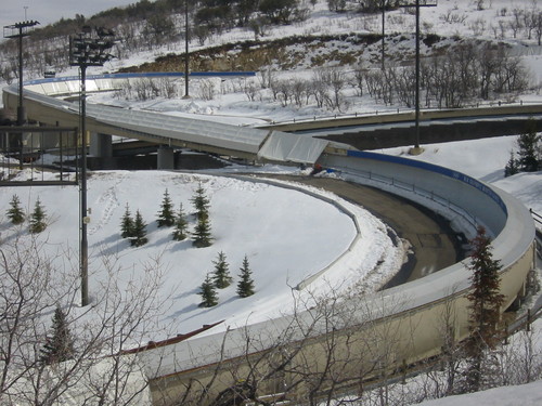 IMG_1599 2 Published November 26, 2018 at 500 × 375 in Cool Runnings 2.0: Ghana and Skeleton in the Olympics Curve 12 of the Park City, Utah skeleton track. AP Photo/Katie Andress