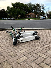 scooter 9 Published November 20, 2019 at 165 × 220 in Careful of The Birds, the electric scooters might hurt you Lime scooters lying near a busy intersection.