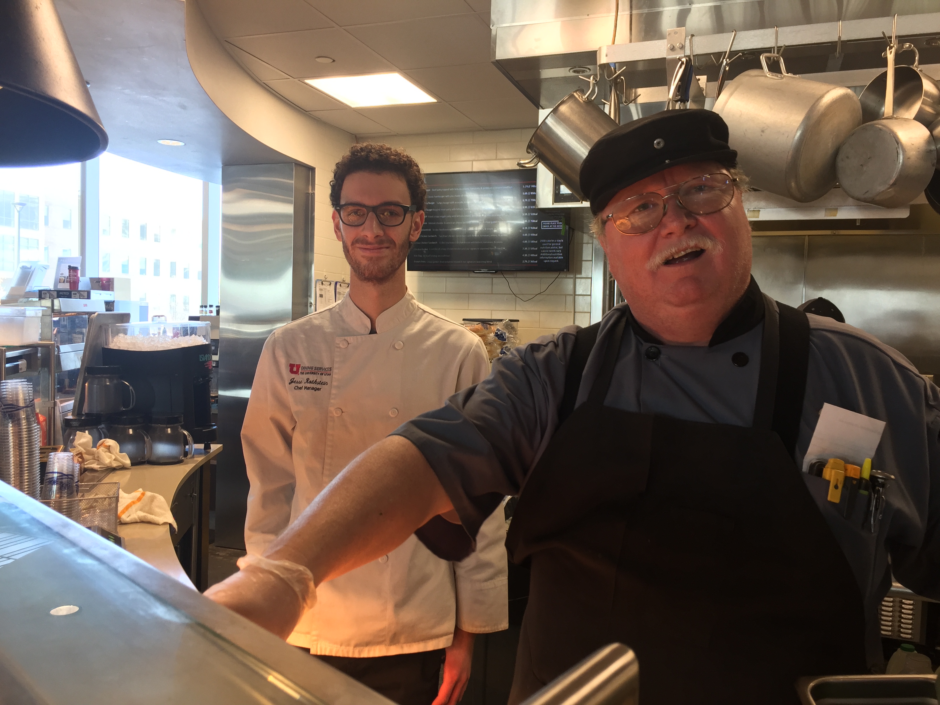 IMG-4461 Published December 4, 2019 at 3264 × 2448 in Misrepresentation of Soul food at the University of Utah Two chefs serving lunch at Lassonde Studios.