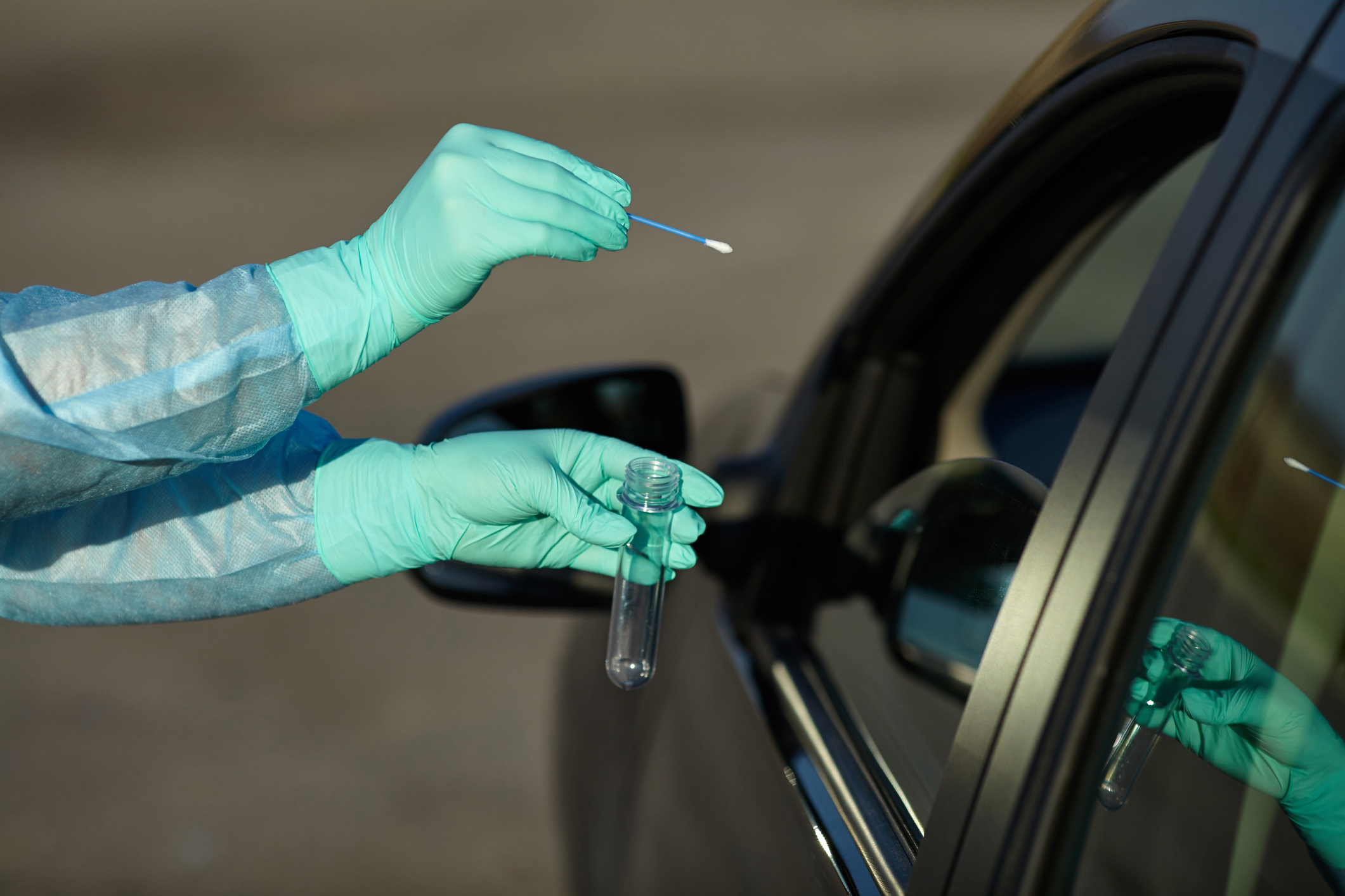 Coronavirus Test Station Published November 17, 2020 at 2121 × 1414 in Coronavirus Test Station Epidemic concept COVID-19. Coronavirus Test Station. Medical worker in full protective gear takes sample from patient at a COVID-19 drive-thru test site. Testing is done by throat swab.