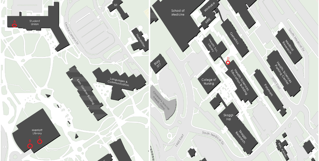 Published November 29, 2017 at 1055 × 533 in Ben Whisenant Hive locations marked on the U’s campus map (Map from the University of Utah, modified by Henry Allen). Like Loading...