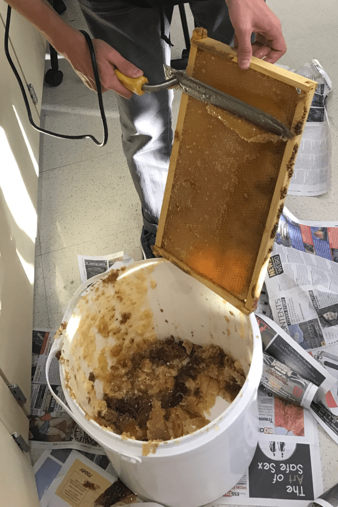 Published November 29, 2017 at 1067 × 1600 in Ben Whisenant A heated knife is used to remove the beeswax coating from a hive frame at the Health Sciences Library (Photo by Leota Coyne). Like Loading...