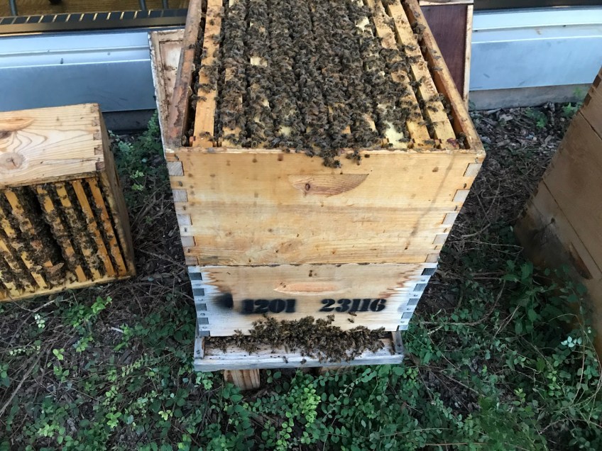 Published November 29, 2017 at 1600 × 1200 in Ben Whisenant Hive boxes opened for inspection at the Health Sciences Library (Photo by Henry Allen). Like Loading...